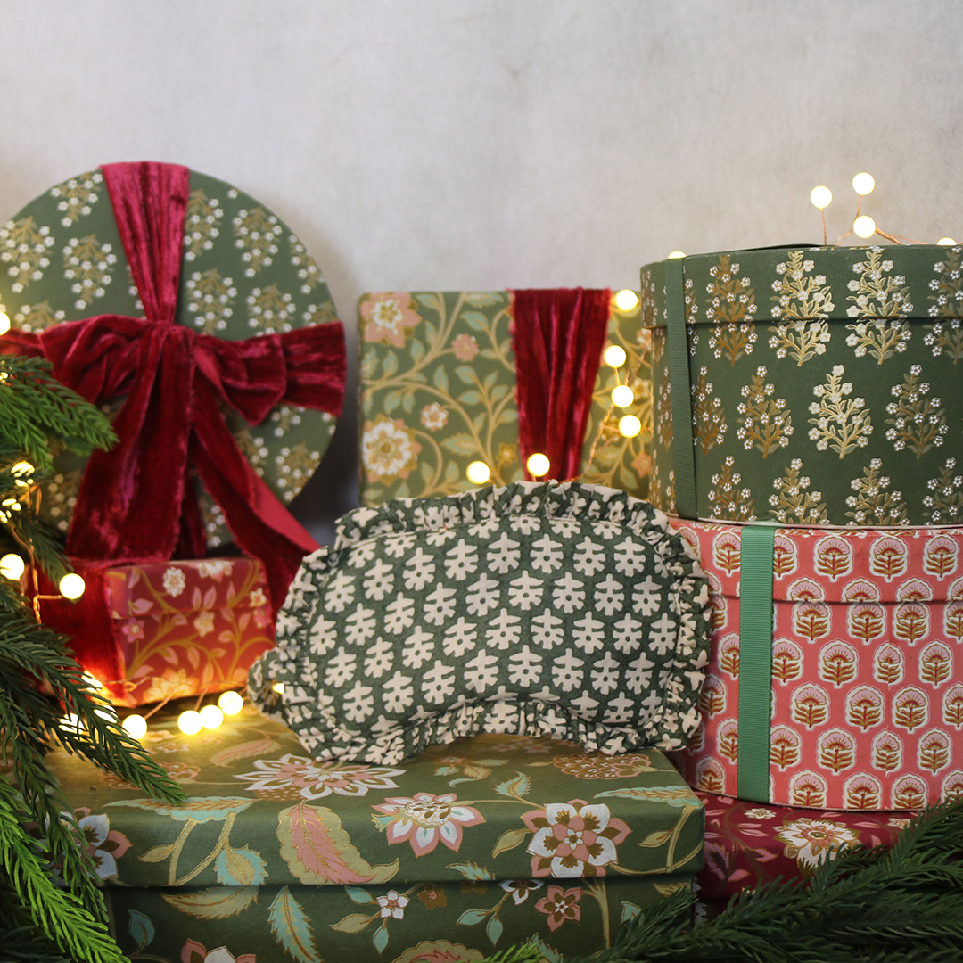 Have sweet dreams every night with our beautiful eye mask. Elegant, with a beautiful block printed design and complimentary coloured velvet on the back, filled with cotton padding for comfort and finished with a gorgeous frill trim. This eye mask is a wonderful gift especially paired with the neck pillow, hot water bottle and bags in the range.