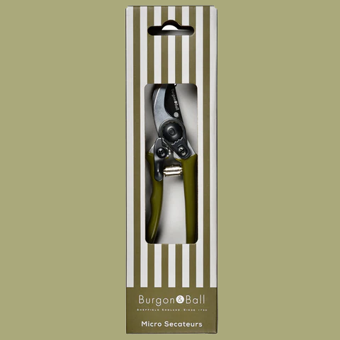 These micro secateurs have a comfort-grip handle in a lovely olive green to complement your green fingers!