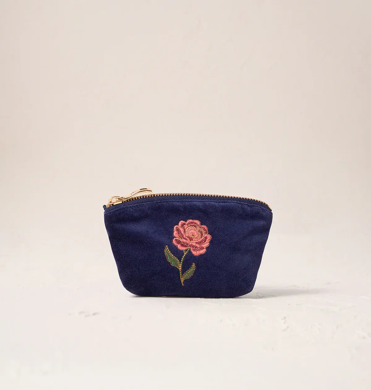 Elizabeth Scarlett Rose Velvet Coin Purse Navy