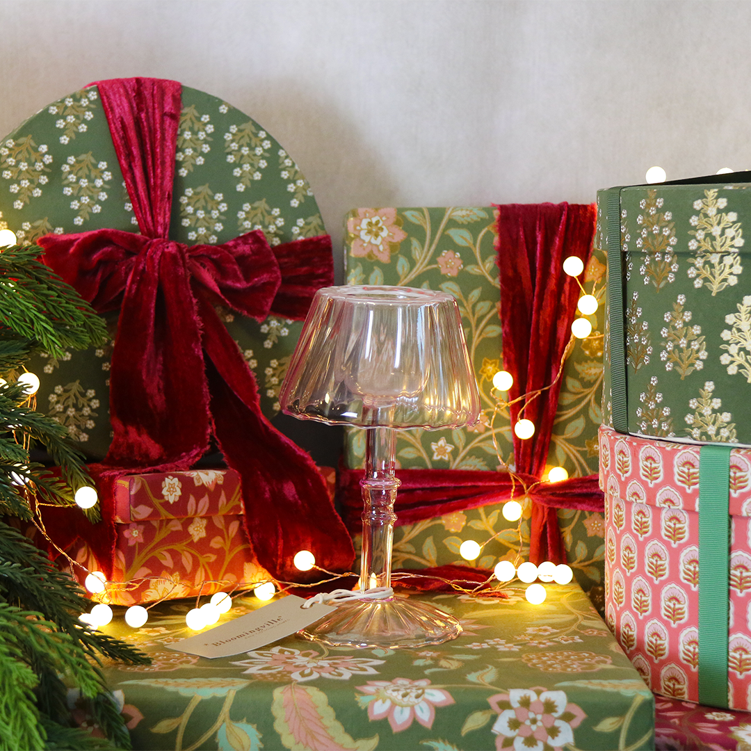 A unique glass carousel tealight holder with snowflake motifs in a glossy silver finish. The heat from the flame causes the charming topper to gently rotate.This item is out of stock online, please call us for instore availability on 015395 63630.