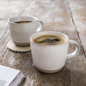 Hand-crafted from Ceramic, with a lovely chunky shape and handle, just made for hugging in your hands. Each mug is finished in an off-white glaze, whilst the base has been left uncoated for a more rustic and natural appearance.
