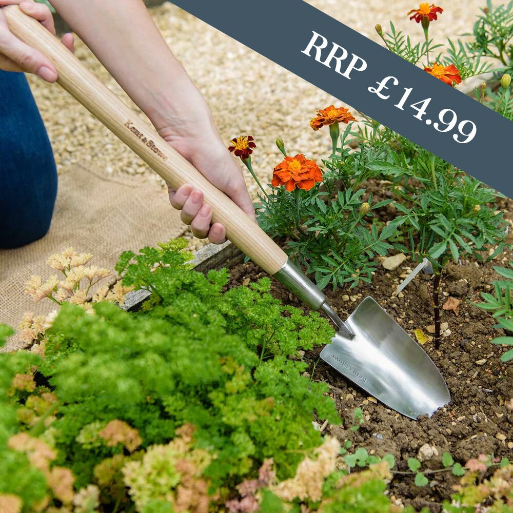 A traditionally styled, high quality Kent & Stowe Border Hand Trowel made from high quality stainless steel and beautiful ash wood. This perfectly midi-sized handle gives you extra reach where you need it to ensure you are not over reaching. Additionally, the trowel has a deep dish to allow scooping soil. It also has quality guaranteed with it’s 15 year guarantee.