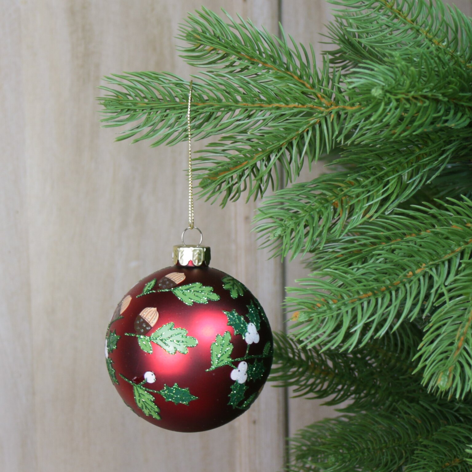This Red Glass Ball with Leaves and White Berries from Gisela Graham is the perfect ornament to add some woodland charm to your tree.This item is out of stock online, please call us for instore availability on 015395 63630.