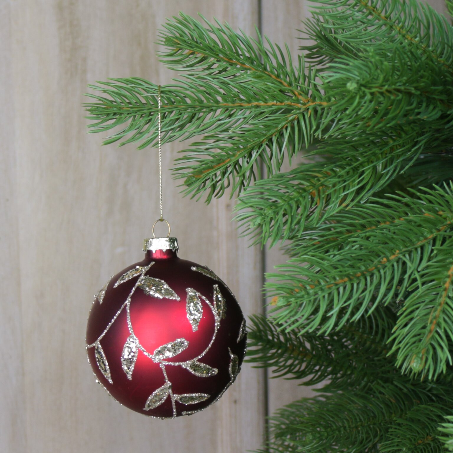 This Red Glass Bauble with Gold Glitter Leaves from Gisela Graham is the perfect ornament to add some sparkle to your tree.