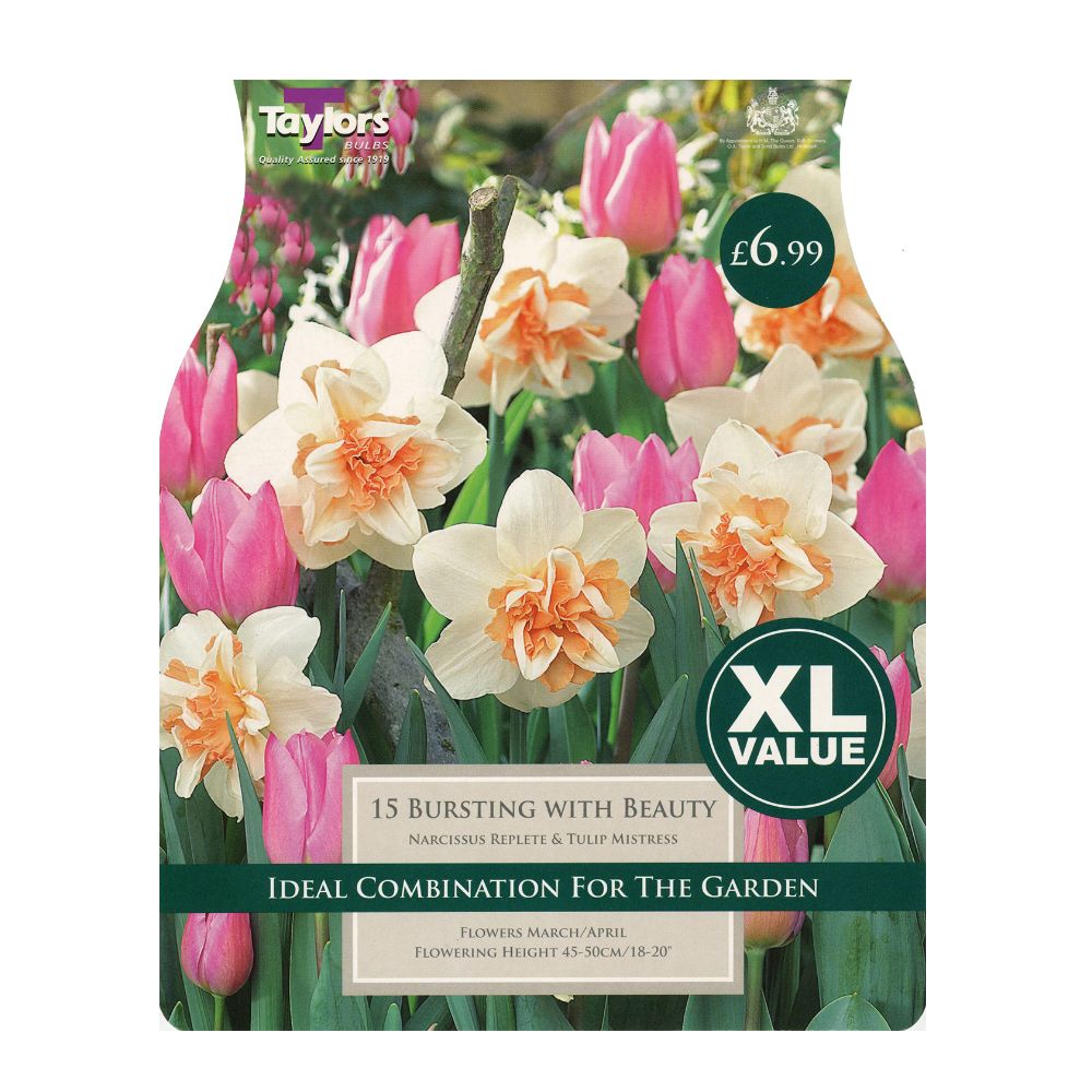 Taylors Bursting with Beauty Bulbs is a combination pack of Narcissi Replete & Tulip Mistress.