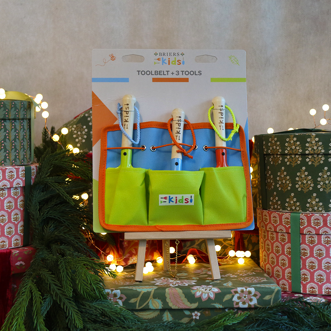 Includes a trowel, fork, rake, and handy belt to carry everything in.